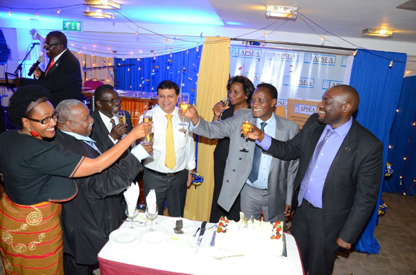 The Chief Guests Cabinet Secretary, Ministry of Lands and Physical Planning Prof. Jacob T. Kaimenyi and the Chief Registrar of the Judiciary Ms. Anne Atieno Amadi make a toast during the APSEA Gala Dinner 2016 held on 2nd November 2016 at Sarova Panfric Hotel.
